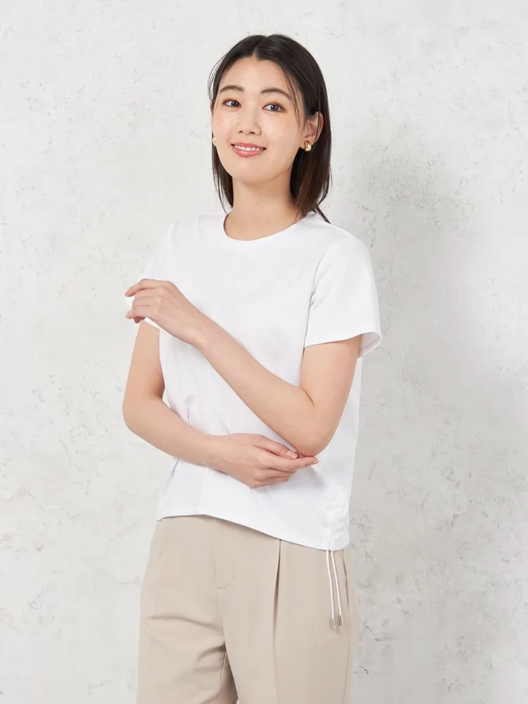 【INDIVI】シルケットポンチ 半袖 サイドドロストTシャツ 春夏【レディース】(オフホワイト)