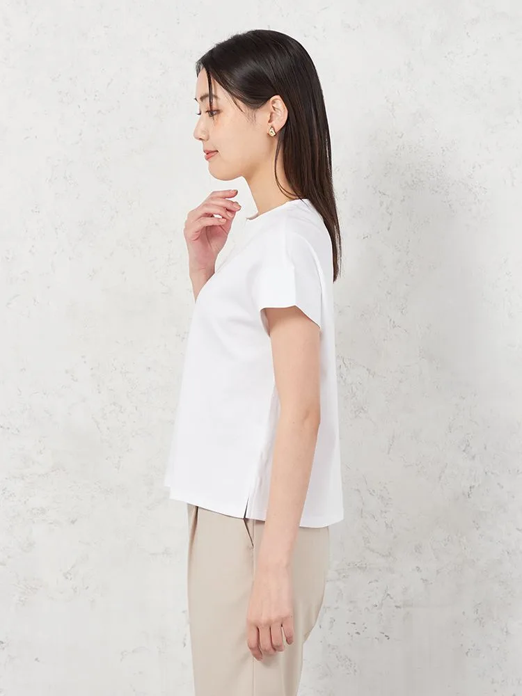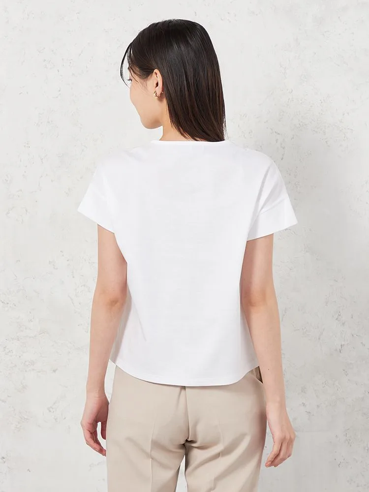 【INDIVI】シルケットポンチ フロントVデザイン 半袖Tシャツ 春夏【レディース】(オフホワイト)