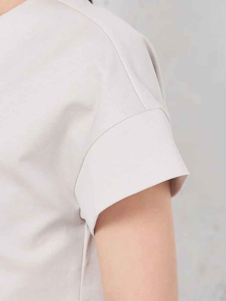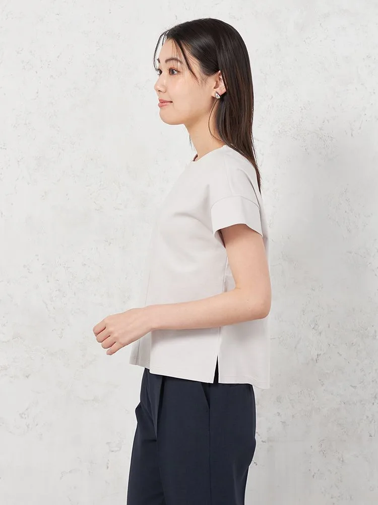 適度な肉感のポンチ素材で身体のラインを拾いにくく、またシルケット加工を施すことにより、滑らかな肌触りと上品な表面感に仕上がっています。
