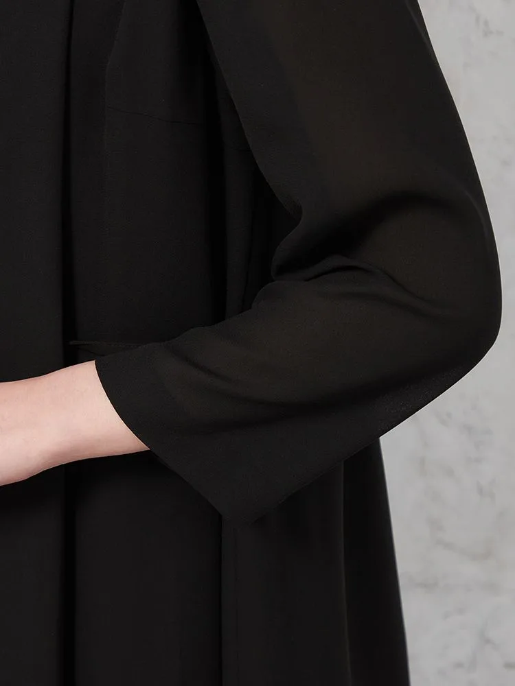 ロングトッパージャケットを羽織ったように見えるデザインで、ゆったり着用できて尚且つ着痩せ効果があります。
