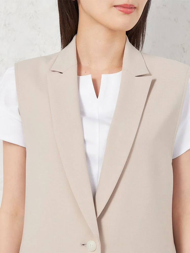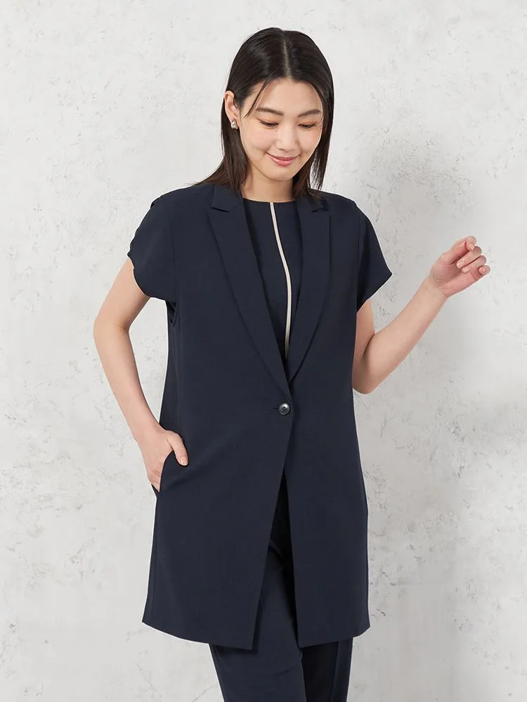 暑い時期のTシャツ合わせでもきちんと感のあるスタイリングが叶うベストです。