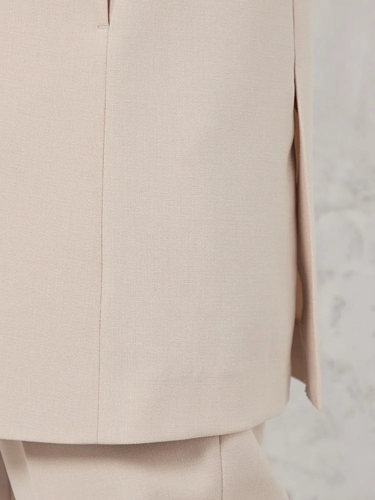 同素材のパンツと合わせたモードなIラインセットアップが今年らしくお薦めです。
