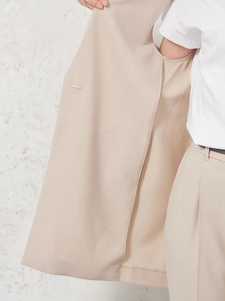 セミピークドラペルのスタイリッシュなIラインシルエットのベストですのでジャケットの代わりとしても活躍するアイテムです。