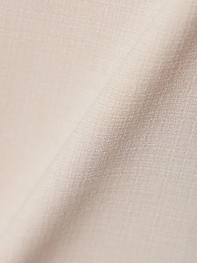 リネンライクなポリエステル混素材で、肌離れの良い風合いに。表面感があり夏でも涼しくご着用いただけます。