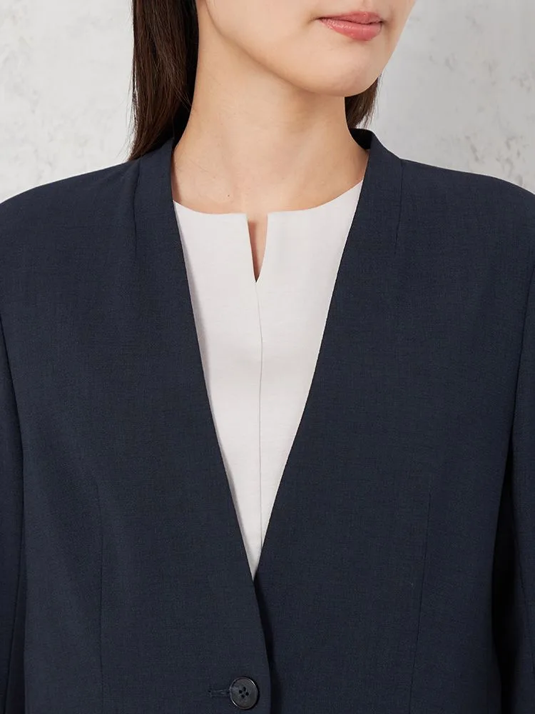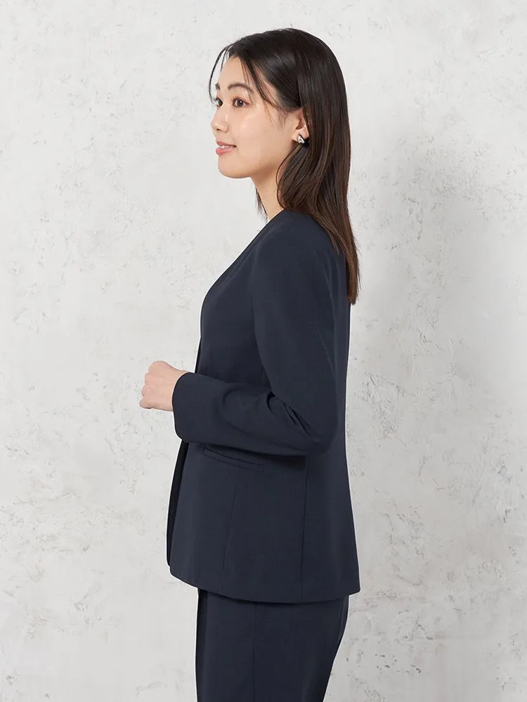 【ウォッシャブル】ノーカラージャケットリネンライクストレッチUVカットSOFFICE春夏【レディース】