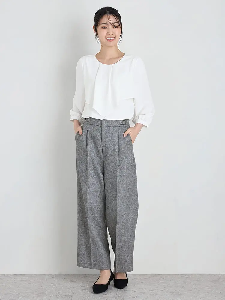 ドレープが綺麗に出る素材は、きちんと感のあるコーデに最適です。