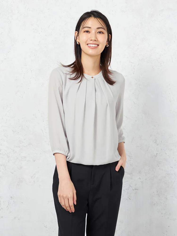 【ウォッシャブル】7分袖袖プリーツブラウスUVカット透けにくい2枚仕立て無地SOFFICE春夏【レディース】