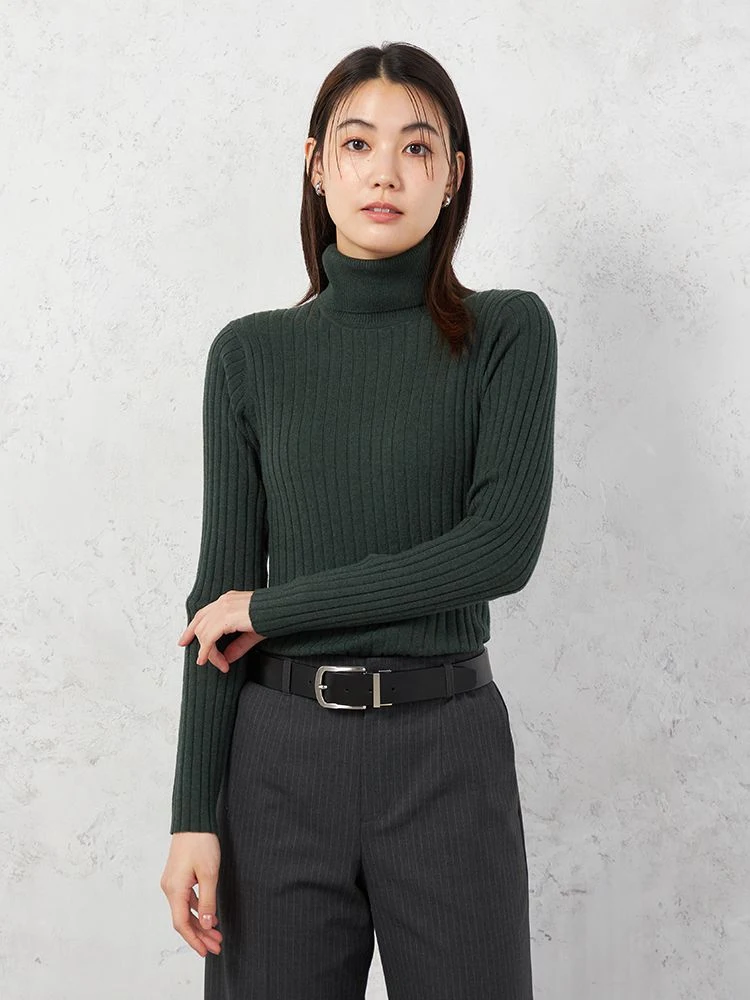 【INDIVI】ワイドリブタートルネックニット ウォッシャブル デオドラント 無地 秋冬【レディース】