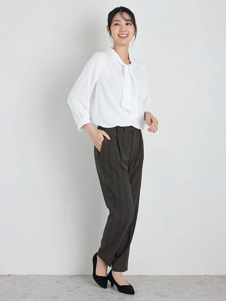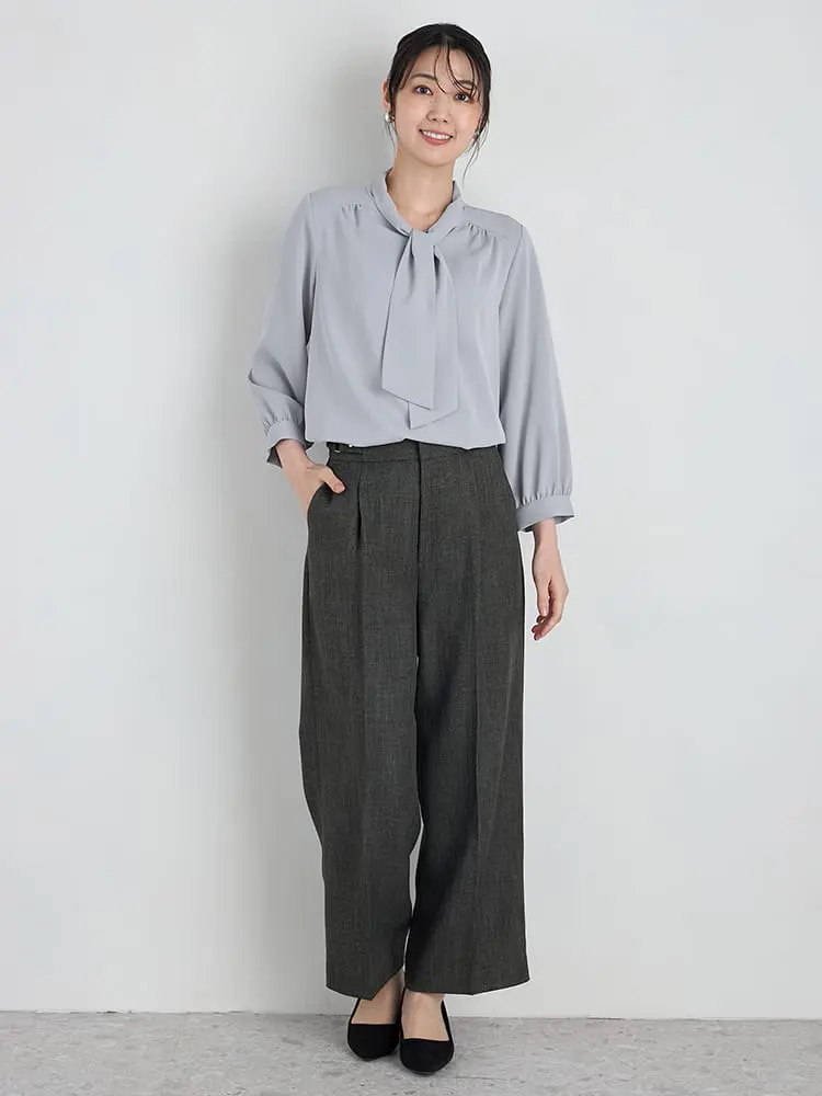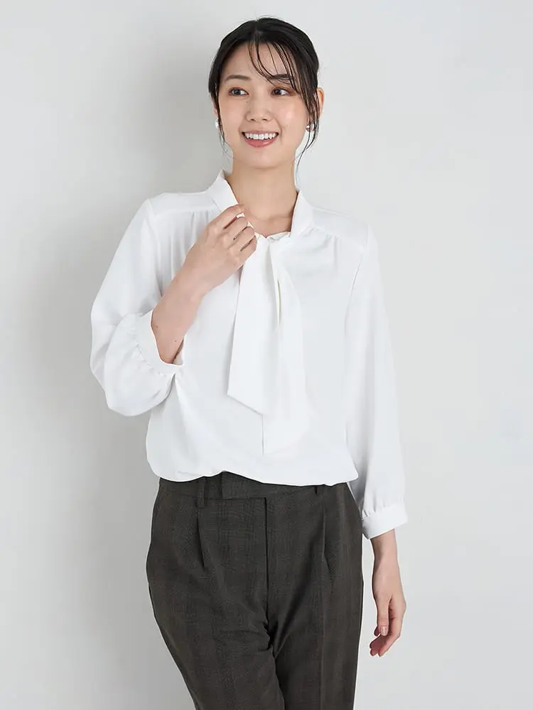 【ストレッチ】ラチネ織配色ボウタイ2WAYブラウス9分袖ウォッシャブルSOFFICE通年【レディース】