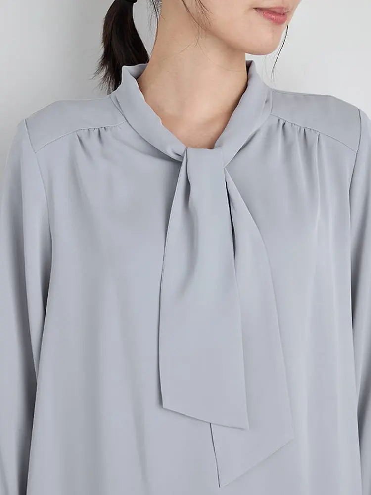 胸元に落ちるボウで、アクセ要らずの華やかさを演出。ウォッシャブル仕様です。