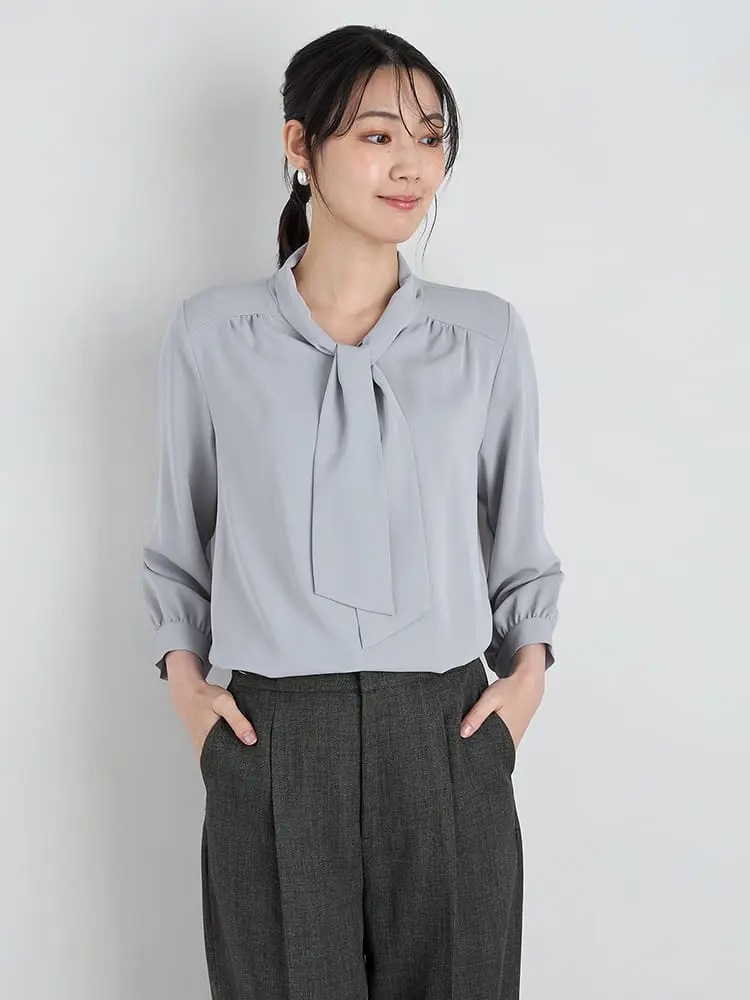 【SOFFICE】デシンボウタイ7分袖ブラウス ニット・カットソー 無地 ウォッシャブル 通年【レディース】(S.ブルー)