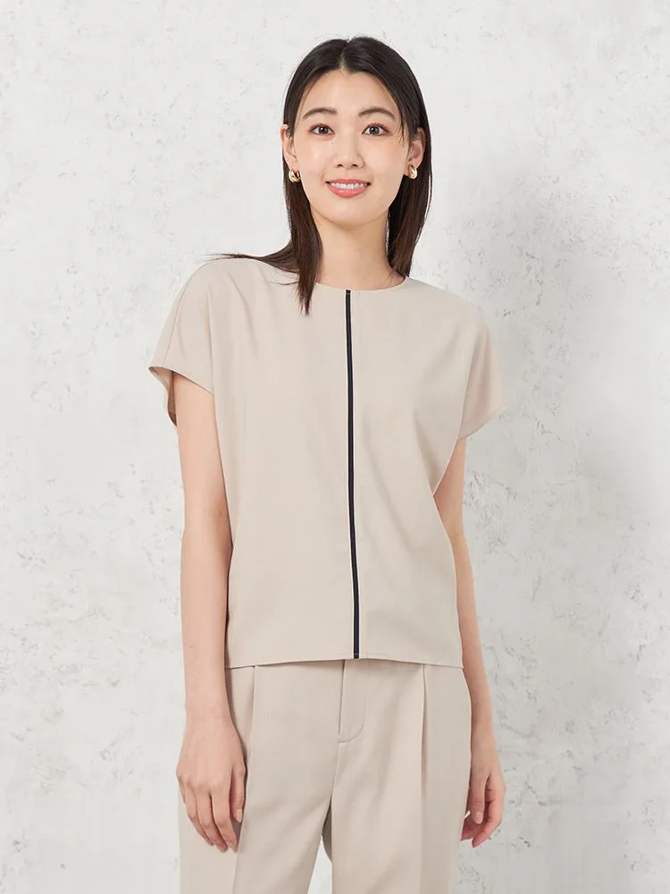 【INDIVI】ウォッシャブルソフトクレープ半袖配色ブラウス無地春夏【レディース】