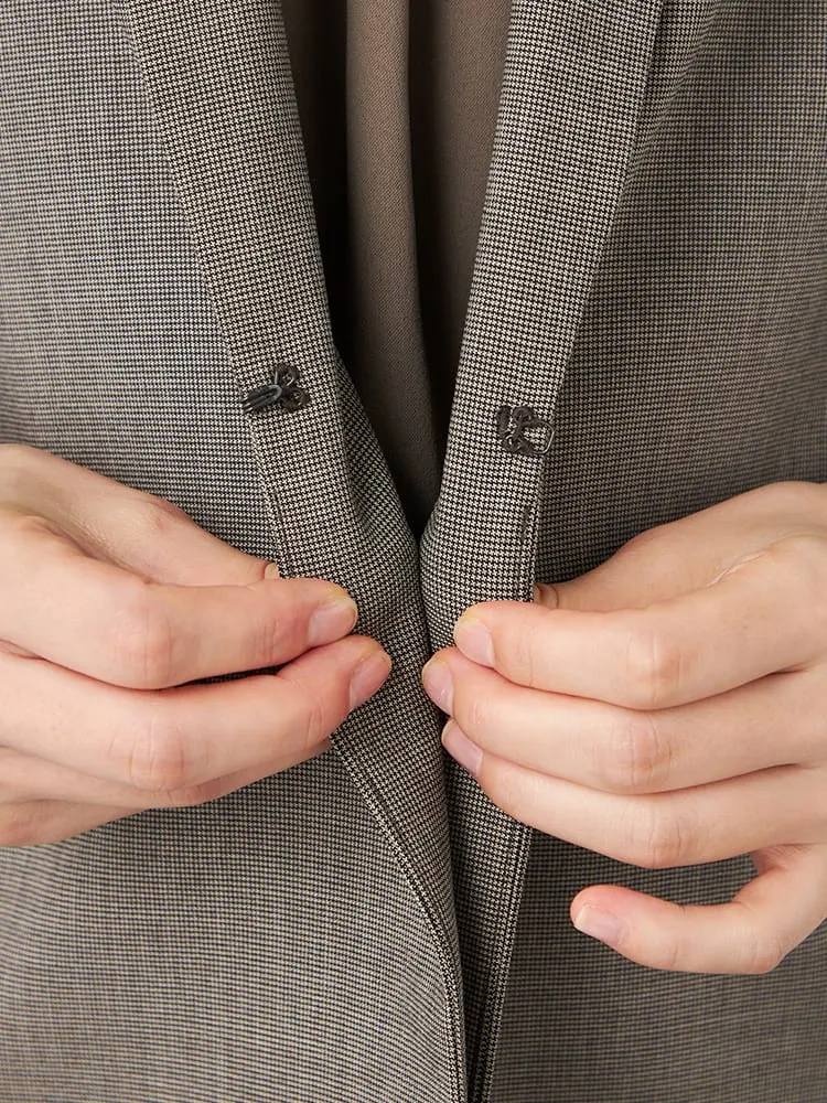 【SOFFICE】 ウーリーポリエステルオックス メタル調 4つボタン ジャケット 長袖布帛 ソフィーチェ ウォッシャブル ストレッチ 通年