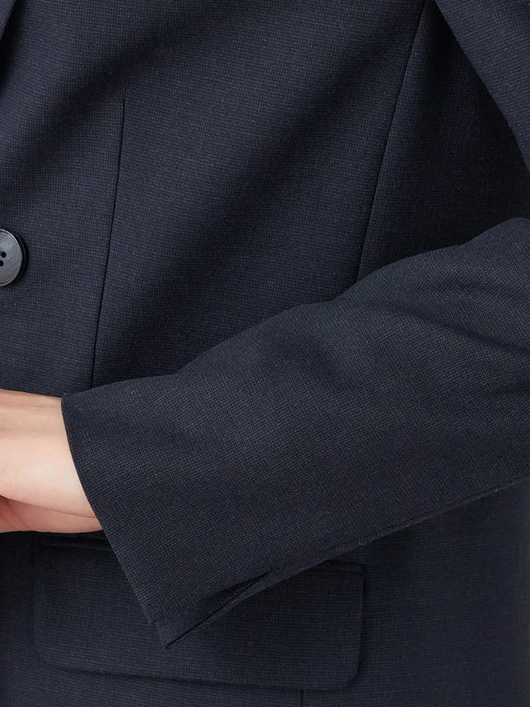 【SOFFICE】 ウーリーポリエステルオックス メタル調 4つボタン ジャケット 長袖布帛 ソフィーチェ ウォッシャブル ストレッチ 通年