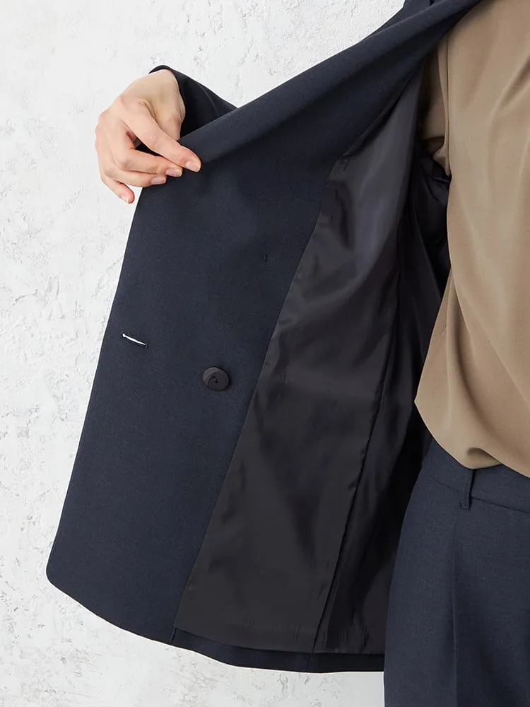 リラックス感がありながら、キレイ目な印象のダブルジャケットです。