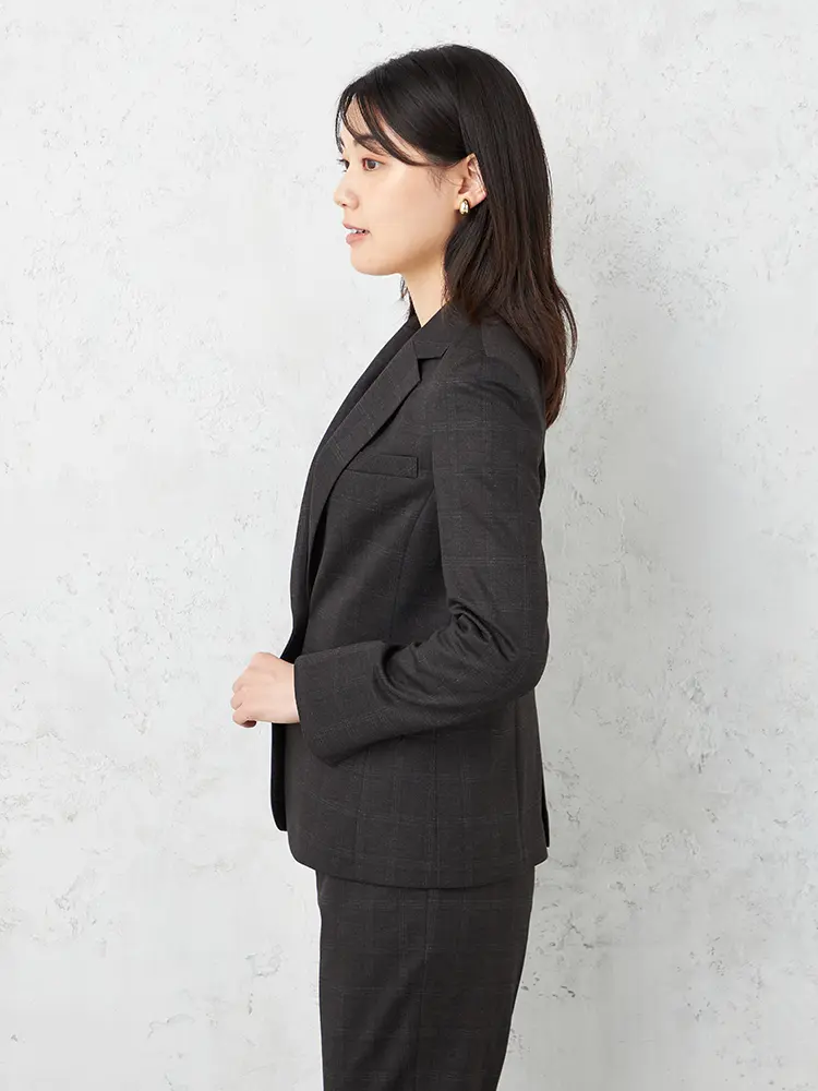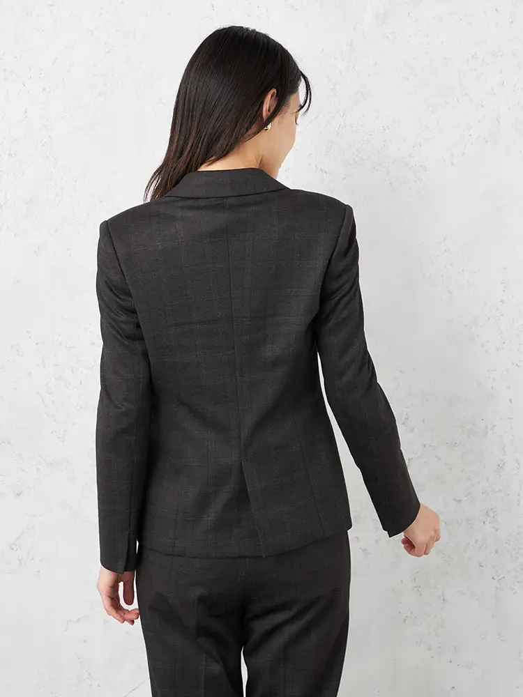 【ストレッチ】ジャケット1つボタン【REDAFLEXO】グレーチェックSTOVEL&MASON秋冬【レディース】