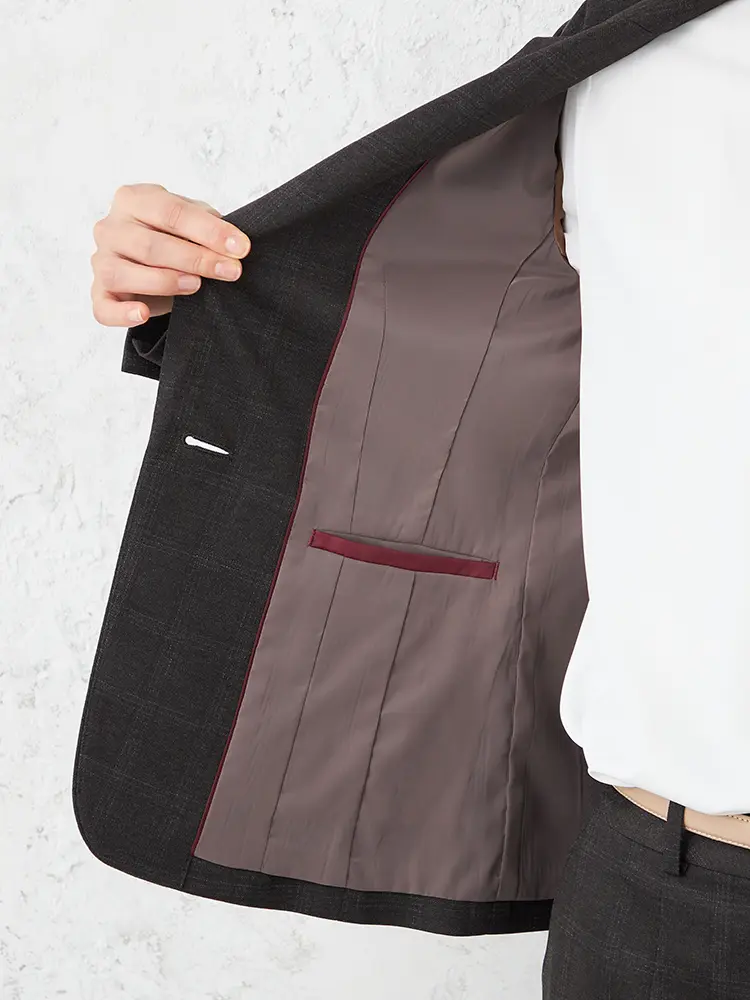 コーディネートをトラディショナルに仕上げるチェック柄の総裏仕立て仕様のジャケット。