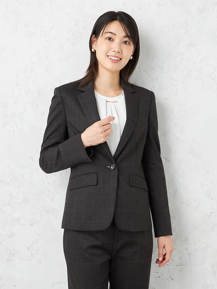 【i-suit -アイスーツ-】 プリント ニット 1つボタン ジャケット ビジネス チェック 柄物 ストレッチ 上下ウォッシャブル 秋冬 【レディース】