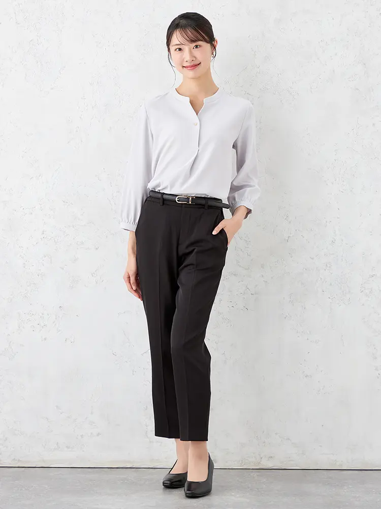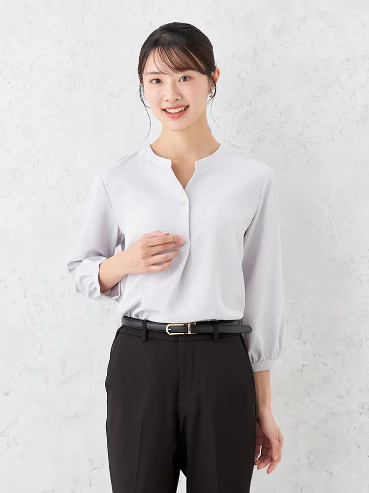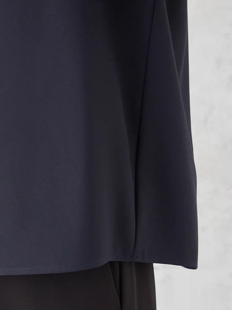 ボトムイン、アウトも両方決まる、絶妙なシルエットバランスのプルオーバーブラウス。