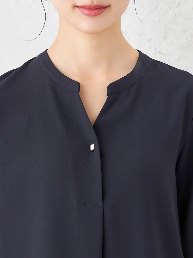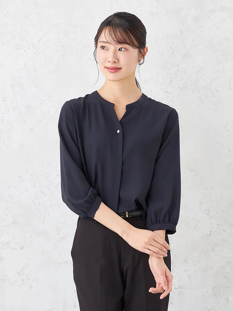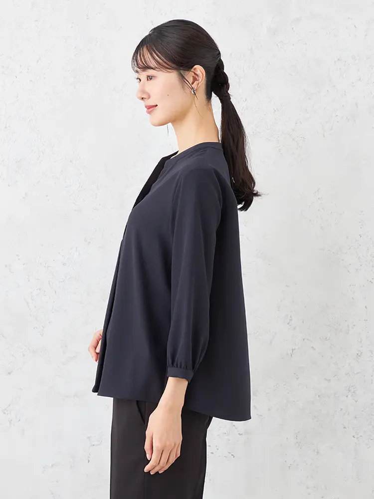 【ウォッシャブル】ブラウス長袖クルーネックプルオーバータックブラウス透けにくいストレッチ無地SOFFICE通年【レディース】