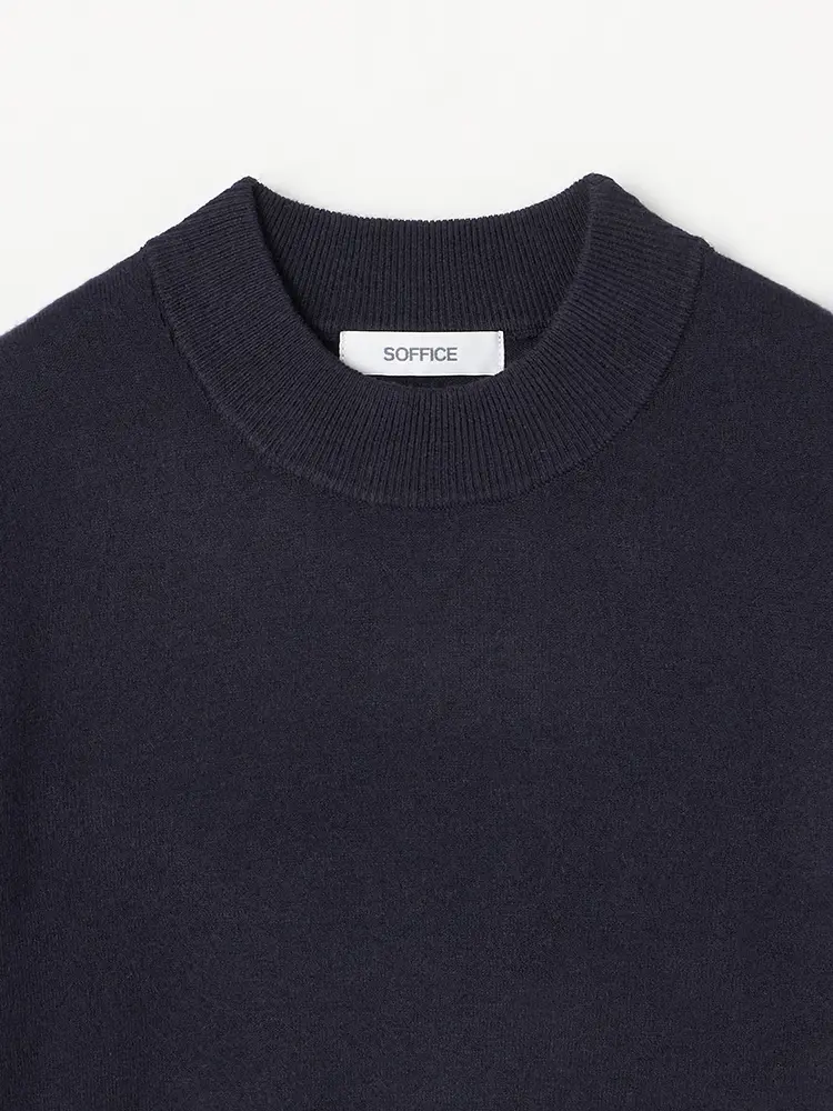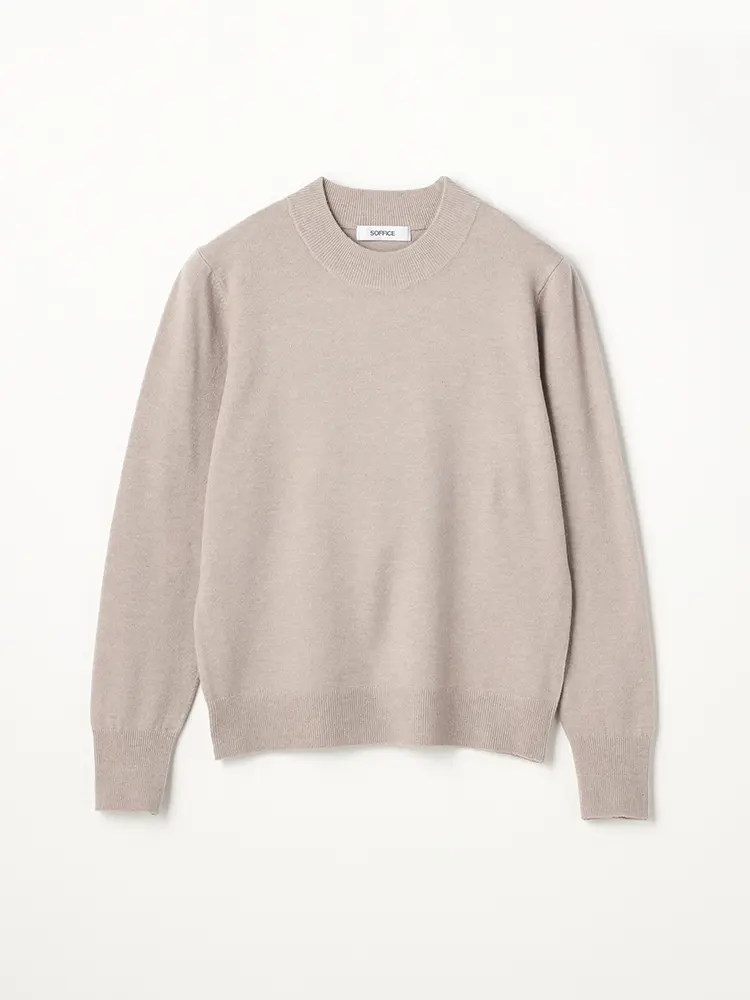 柔らかな印象のカラーがコーディネートにマッチするモックネックのニット。