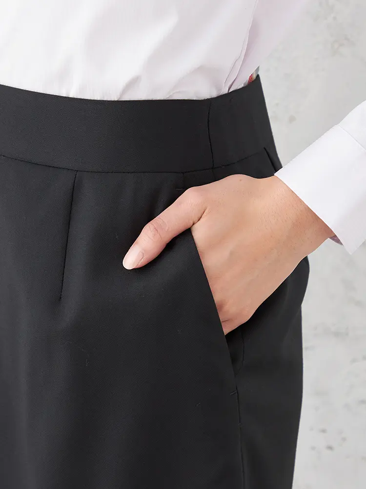 イタリアの老舗生地メーカー「REDA」社の高級ウールを使用した、シックなブラックタイトスカート。