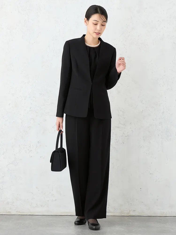 【INDIVI LIFE】ノーカラージャケットパンツフォーマル 上下ウォッシャブル 通年 礼服 【レディース】