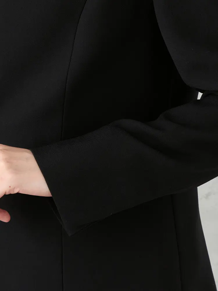 【上下ウォッシャブル】フォーマルアンサンブルボウタイ取り外し可ノーカラージャケット/ワンピース黒無地ViVi通年礼服【レディース】