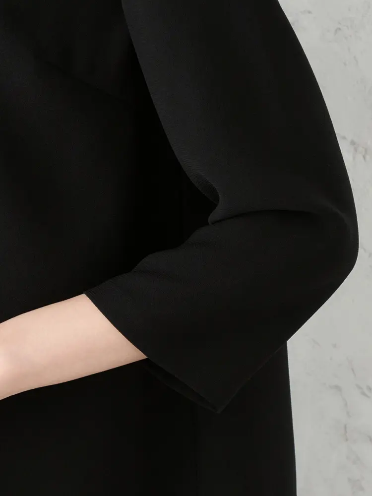 ゆとりのあるシルエットで体型をカバーし、楽な着心地で長時間の式も快適。