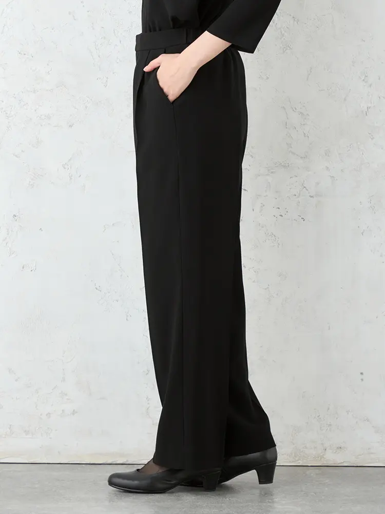 【ストレッチ】フォーマル3点セットジャケットパンツブラウス黒無地YUMIKATSURAEnForm通年礼服【レディース】