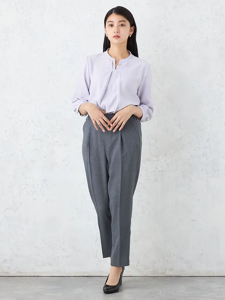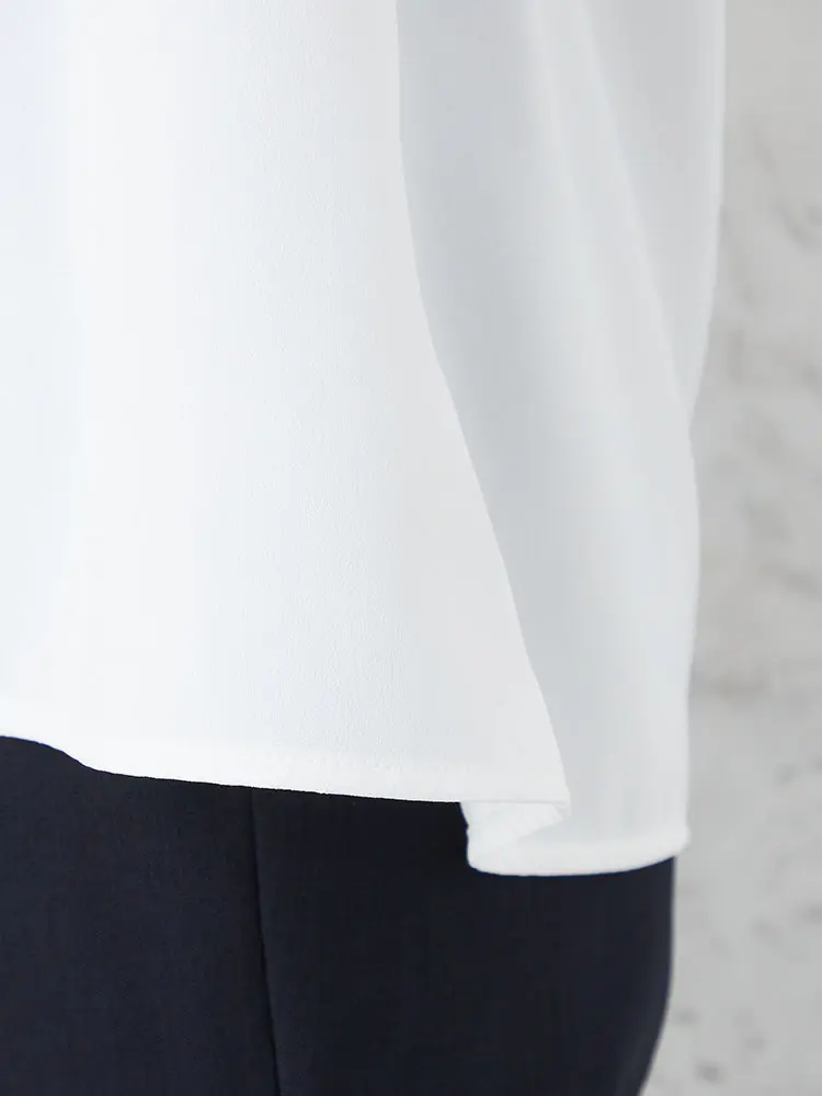 透けすぎないソフトタッチなジョーゼットを使用し、上品で好印象な佇まいに仕上げました。