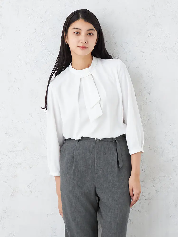 【SOFFICE】2WAYアクセ付きスタンドカラーボウタイブラウスカットソーソフィーチェ通年【レディース】