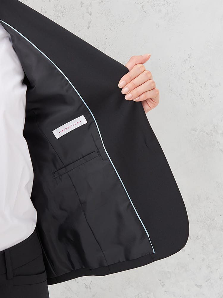 【SOFFICE】 ポリエステル レーヨン 黒無地 2つボタン ジャケット ウォッシャブル ストレッチ 通年