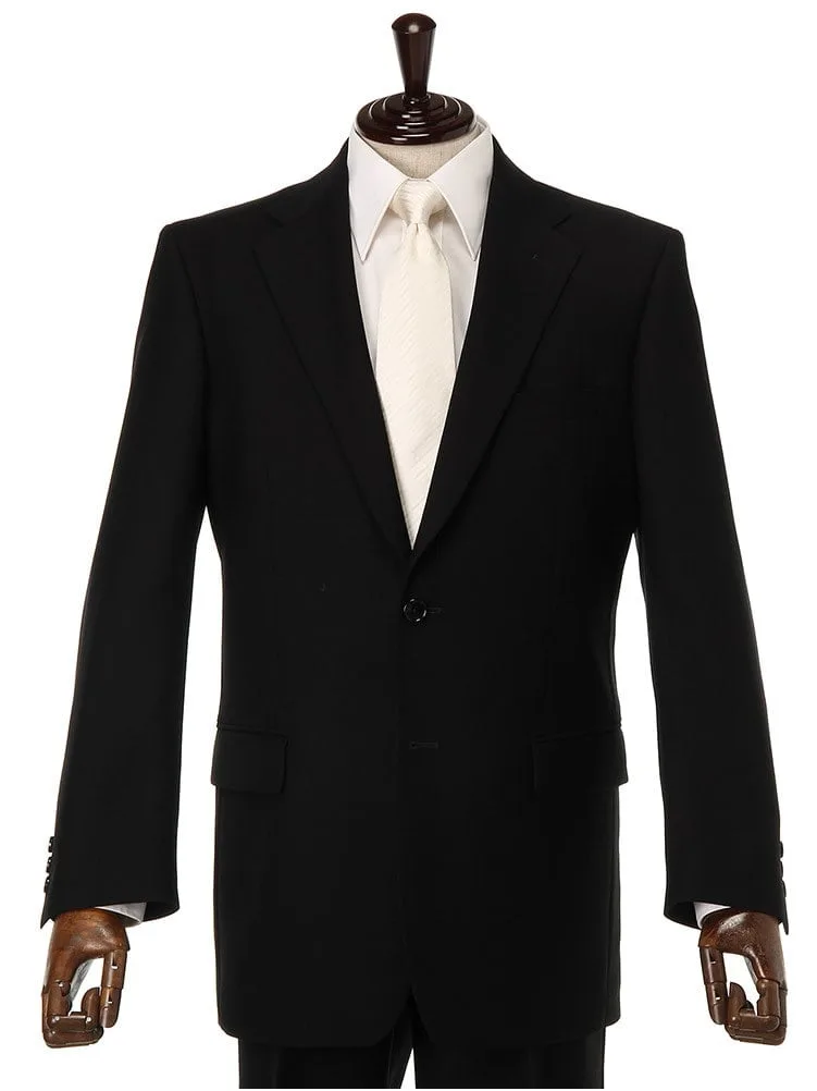 [礼服]【ワンタック】フォーマル2つボタンサマーフォーマルウール混黒無地チェスターバリー春夏礼服