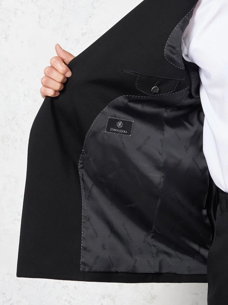 世界的に有名なブランド「ユミカツラ」のフォーマルスーツです。厳選した高級素材を用い、伝統ある英国のスーツテクニックを駆使しながら、360度どこから見られても美しく見えるようなフォーマルを意識したシルエットです。品格・優雅・浪漫の3要素を兼ね備えた、「紳士に自信と感動を与えるスーツ」がコンセプトです。
