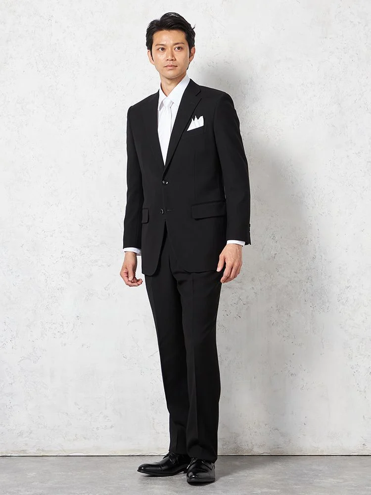 【即納】【WEB限定】フォーマル2つボタン上下ウォッシャブルウエストアジャスター仕様黒無地通年礼服