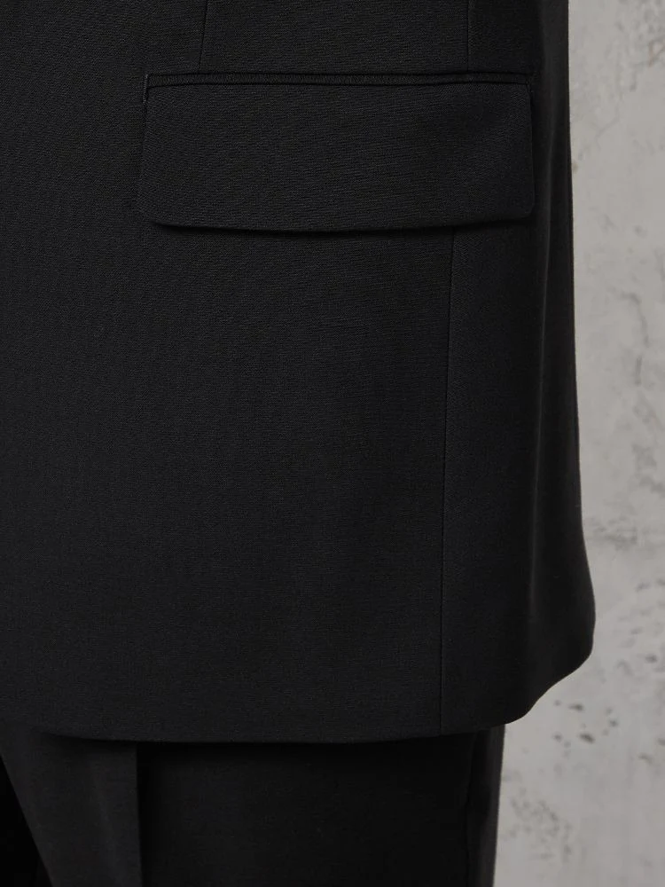 切り込みが1本のセンターベントデザインです。細身でスッキリとしたシルエットが特徴で、快適な着心地を提供します