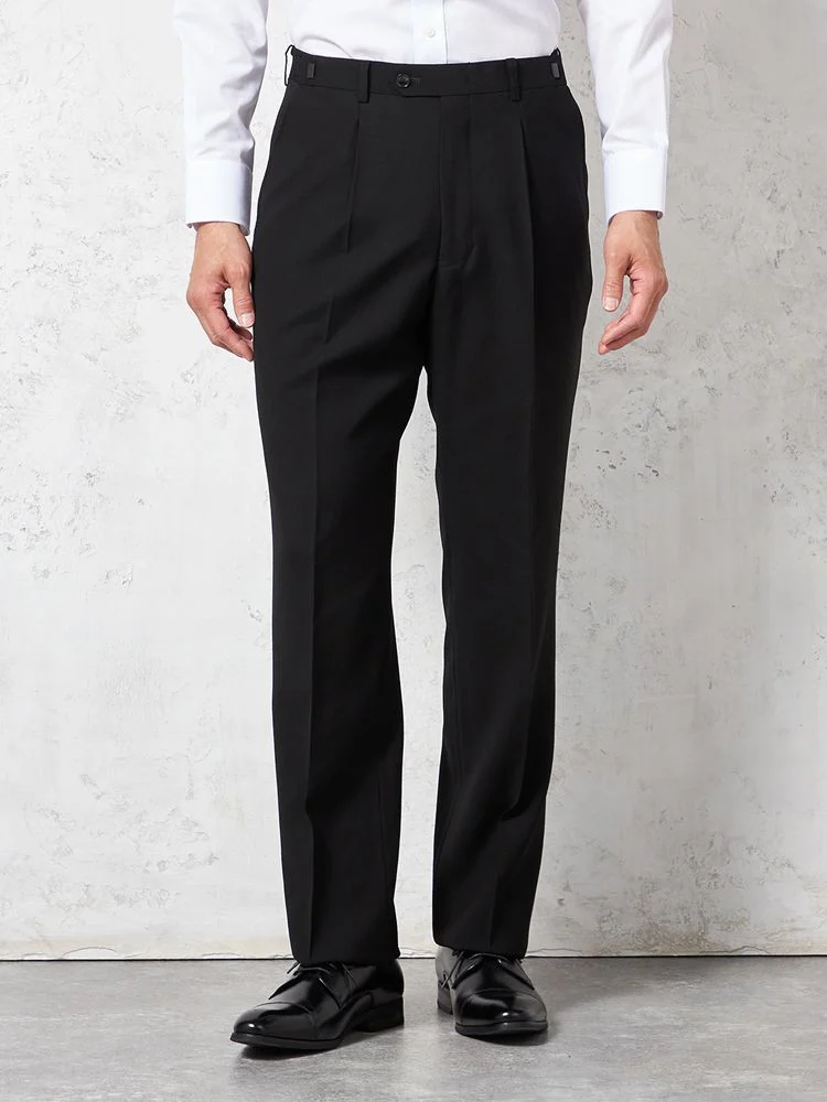 [礼服]【ウエストアジャスター仕様】フォーマル 2つボタン ワンタック 黒無地 カンサイ・ヤマモト 通年 礼服【定番】