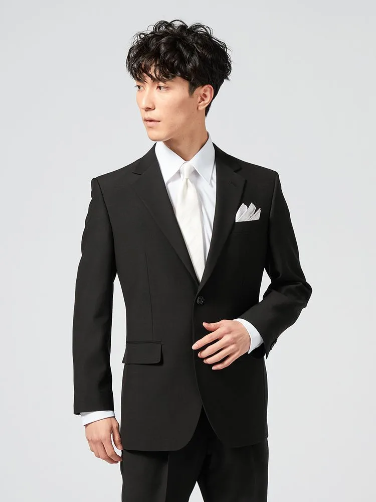 [礼服]【ワンタック】フォーマル2つボタンサマーフォーマルウール混黒無地チェスターバリー春夏礼服