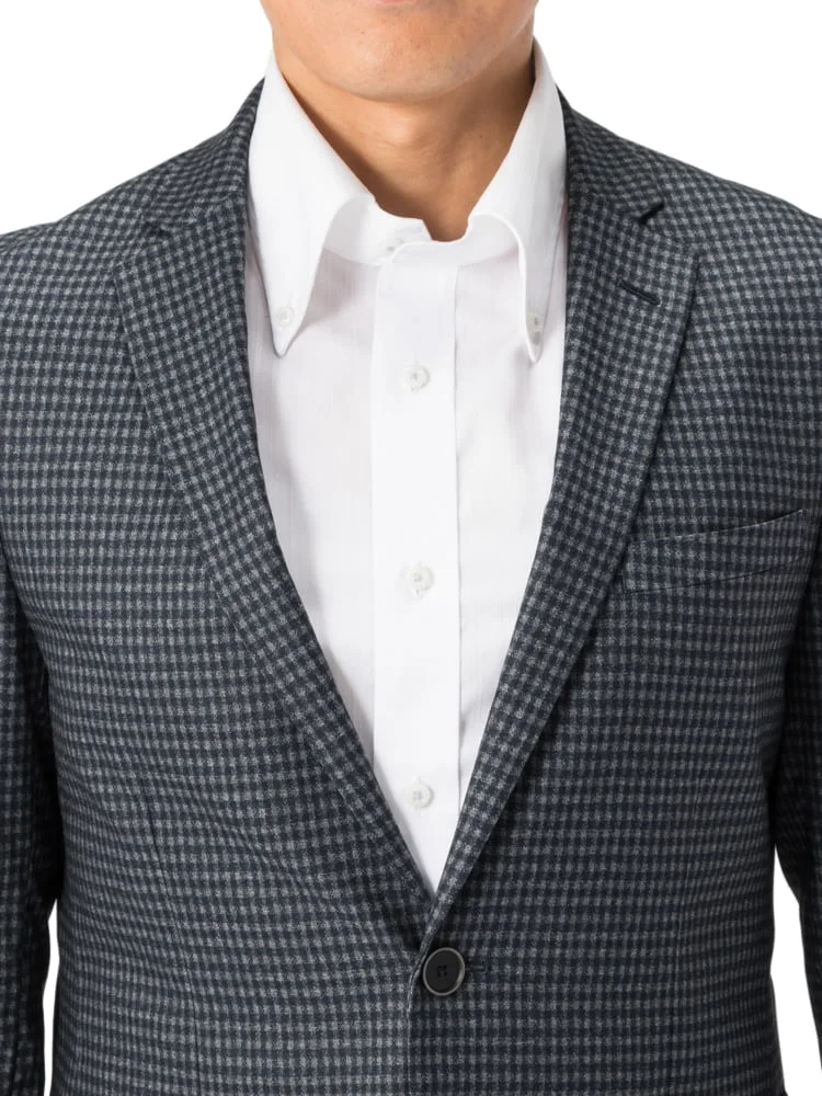 【ストレッチ】ジャケット2つボタンTOLLEGNO社生地使用キュプラ裏地グレンチェックS&MBLUELABEL