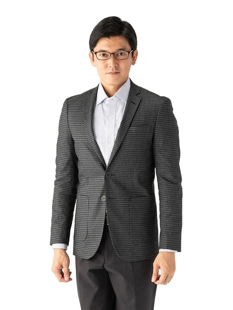 【ストレッチ】ジャケット2つボタンTOLLEGNO社生地使用キュプラ裏地グレンチェックS&MBLUELABEL