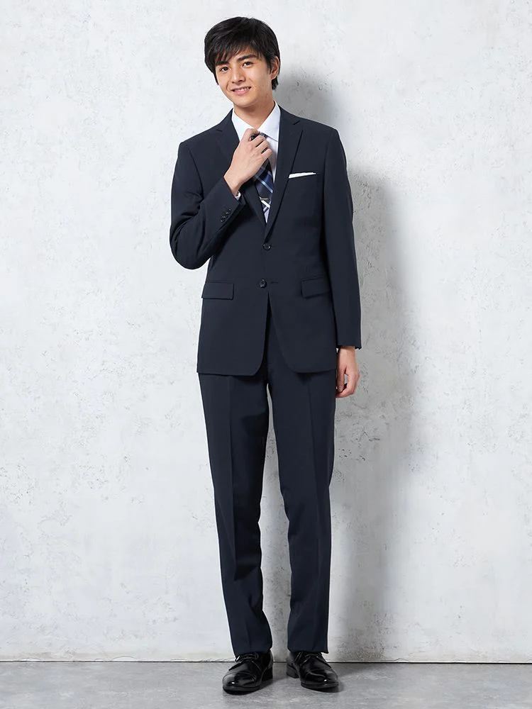 高い汎用性をほこるネイビーワントーンの2つ釦スーツです。