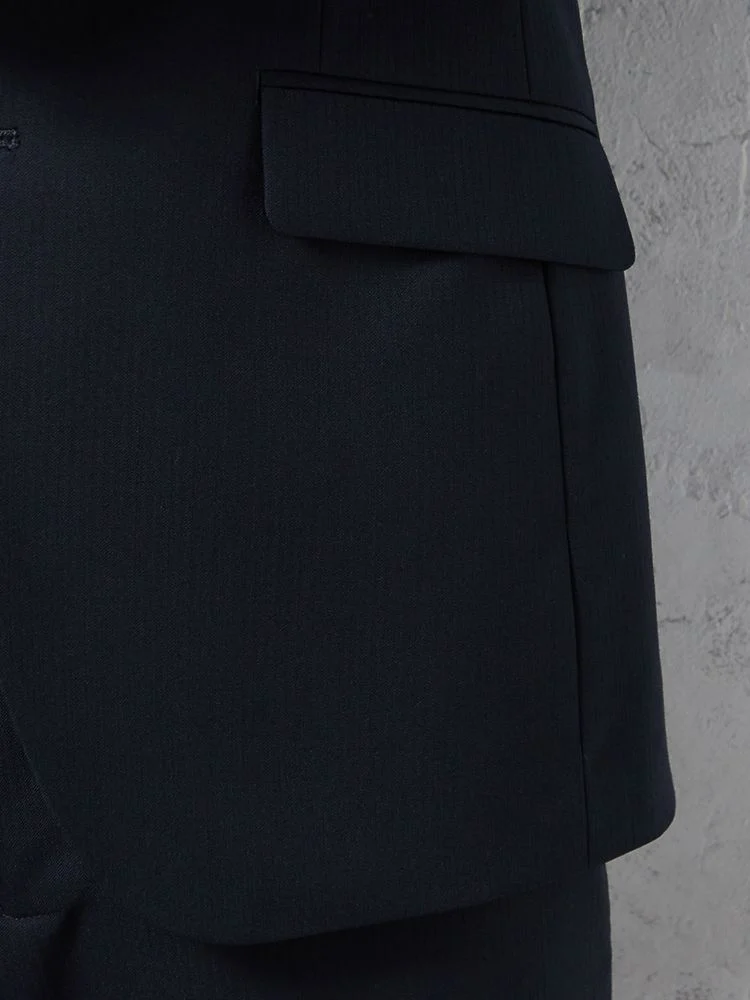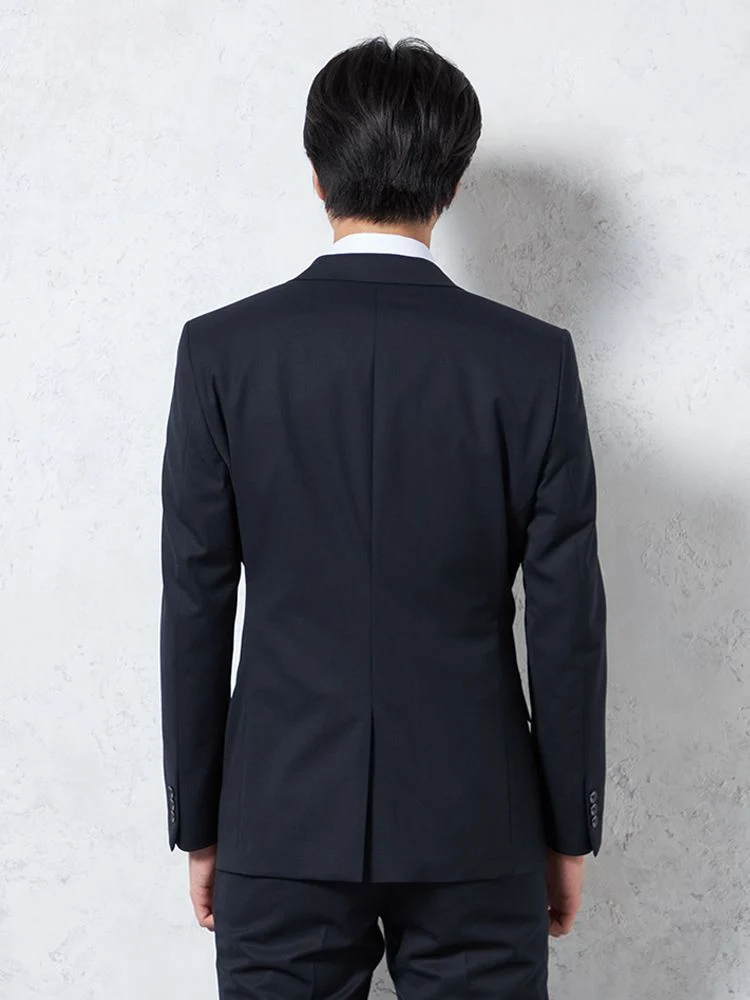 切り込みが1本のセンターベントデザインです。細身でスッキリとしたシルエットが特徴で、快適な着心地を提供します