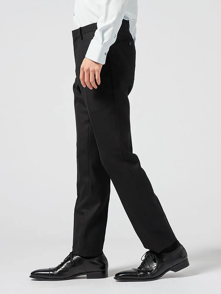 【ウォッシャブル】パンツ ノータック サキソニースラックス 無地 nero 秋冬【スリムデザイン】(ブラック)