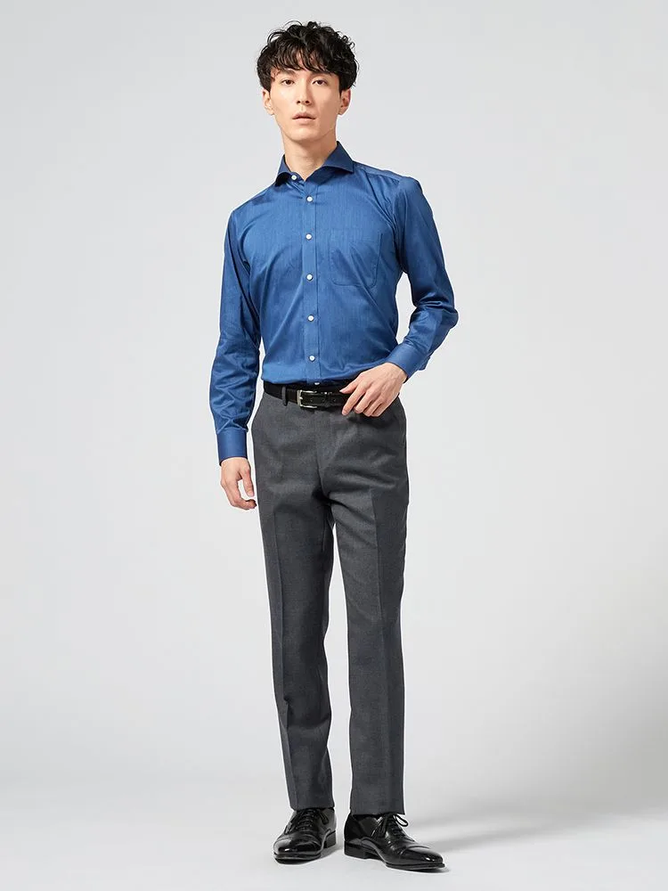 パンツの腰回りに生地の折り込みがなく、スッキリとしたシルエットを実現します。シンプルで洗練された印象を与え、すっきりとした着こなしが可能です。