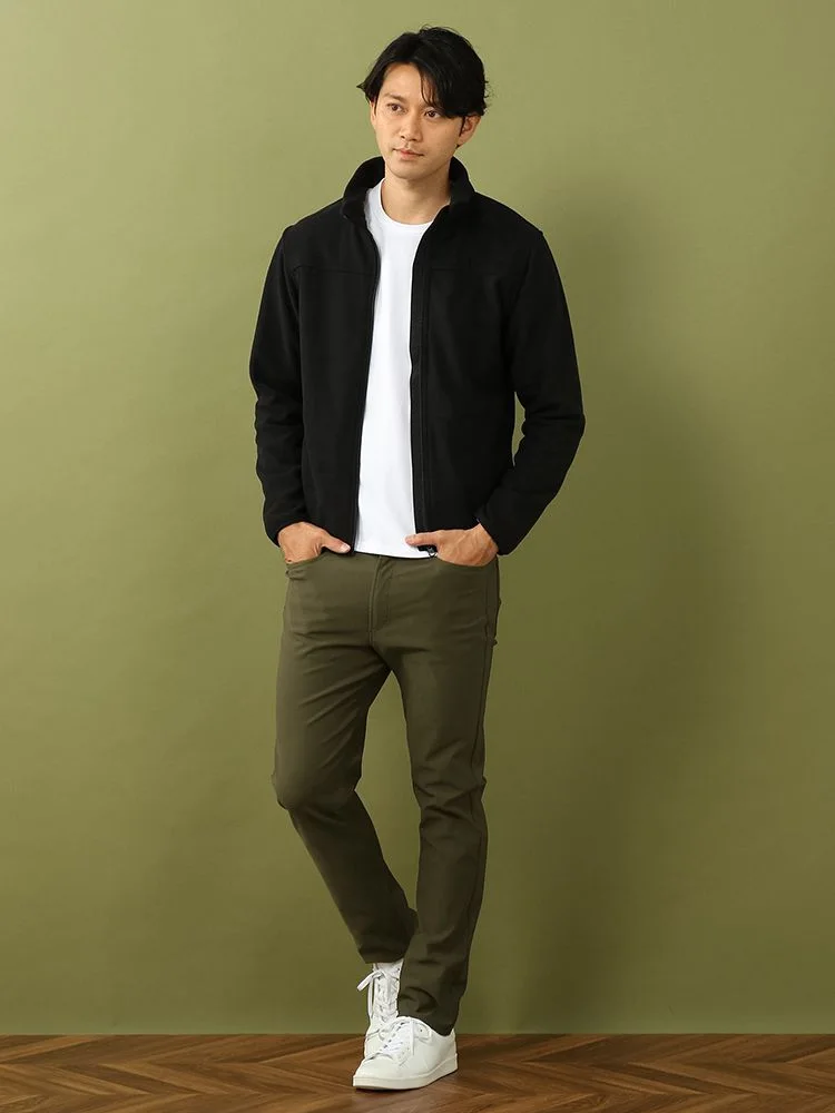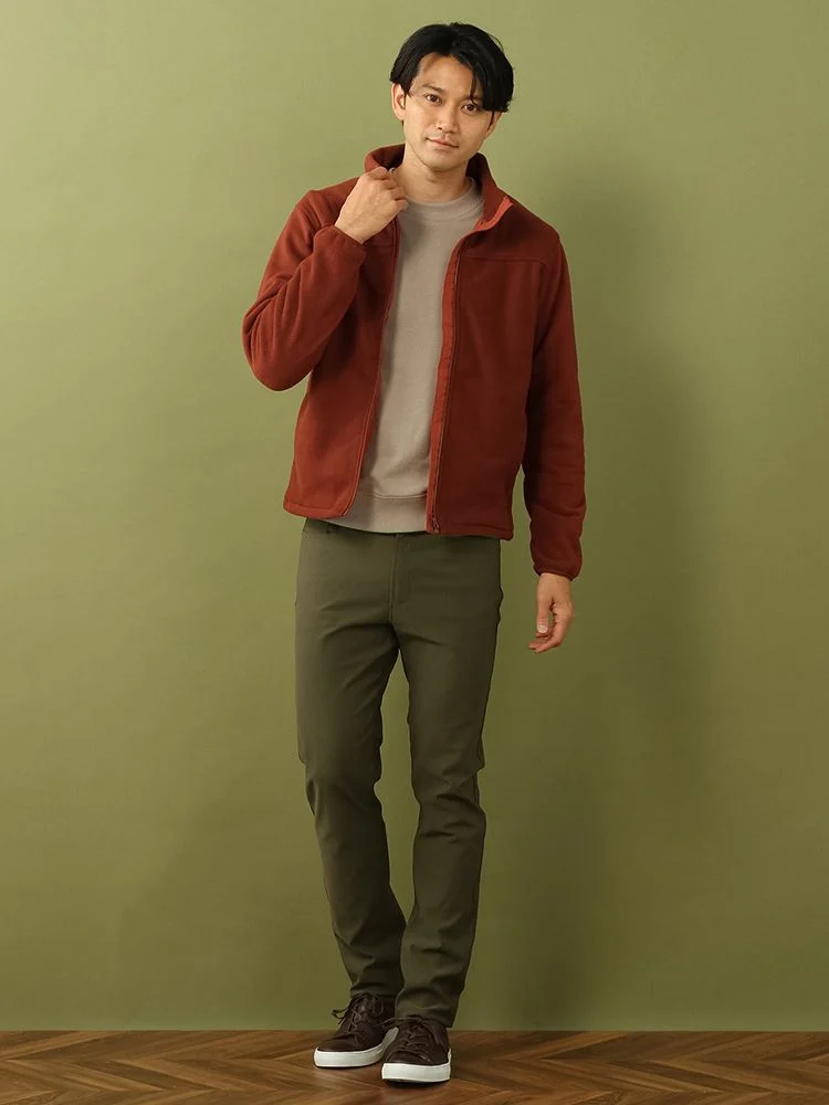 落ち着いた色味が大人のカジュアルスタイルにぴったり、さっと脱ぎ着やしやすいジップアップデザインです。