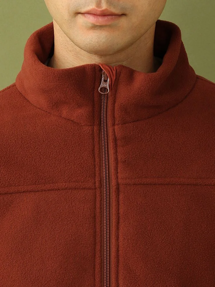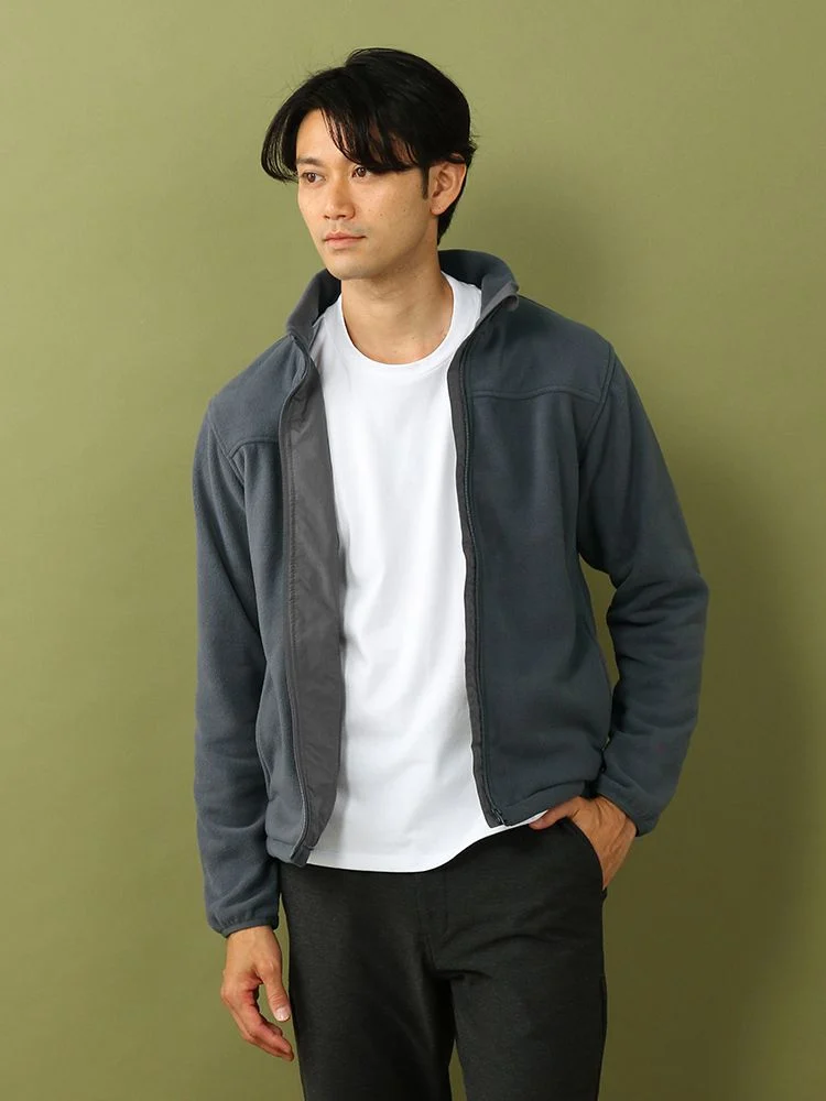 【発熱】長袖 フリース ジャケット サーモソーラー素材使用 秋冬(オレンジ)