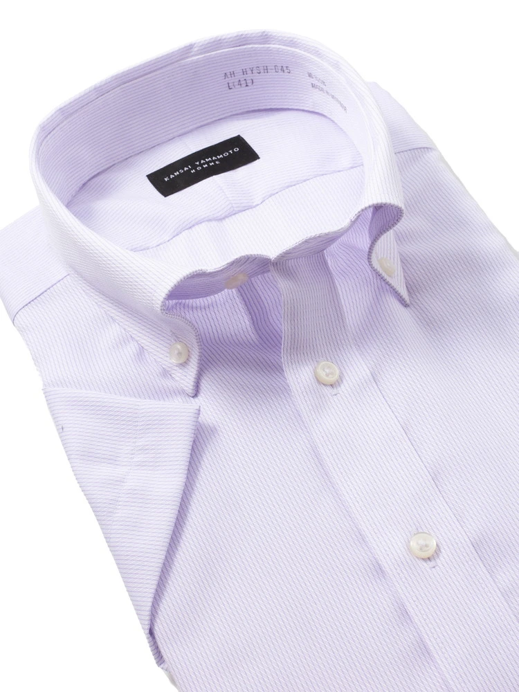 【形態安定】半袖 ワイシャツ ボタンダウン 綿100% 防汚/抗菌/防臭 ストライプ 織柄無地 カンサイ・ヤマモト 春夏