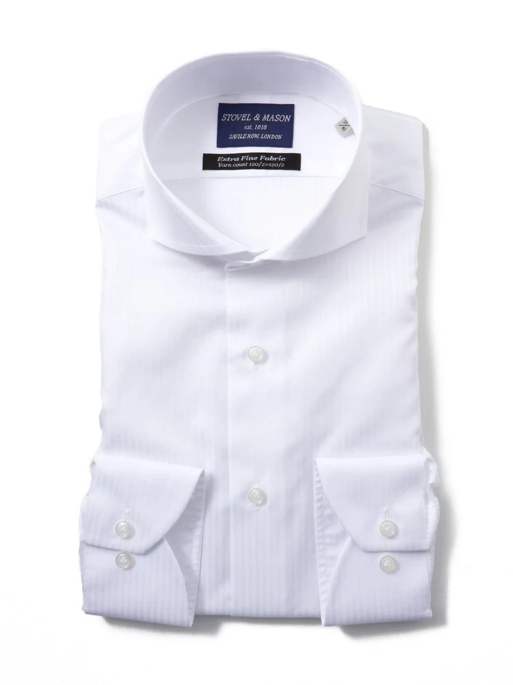 イギリスの老舗スーツブランド「ストーベル&メイソン」のワイドカラ―シャツ。
