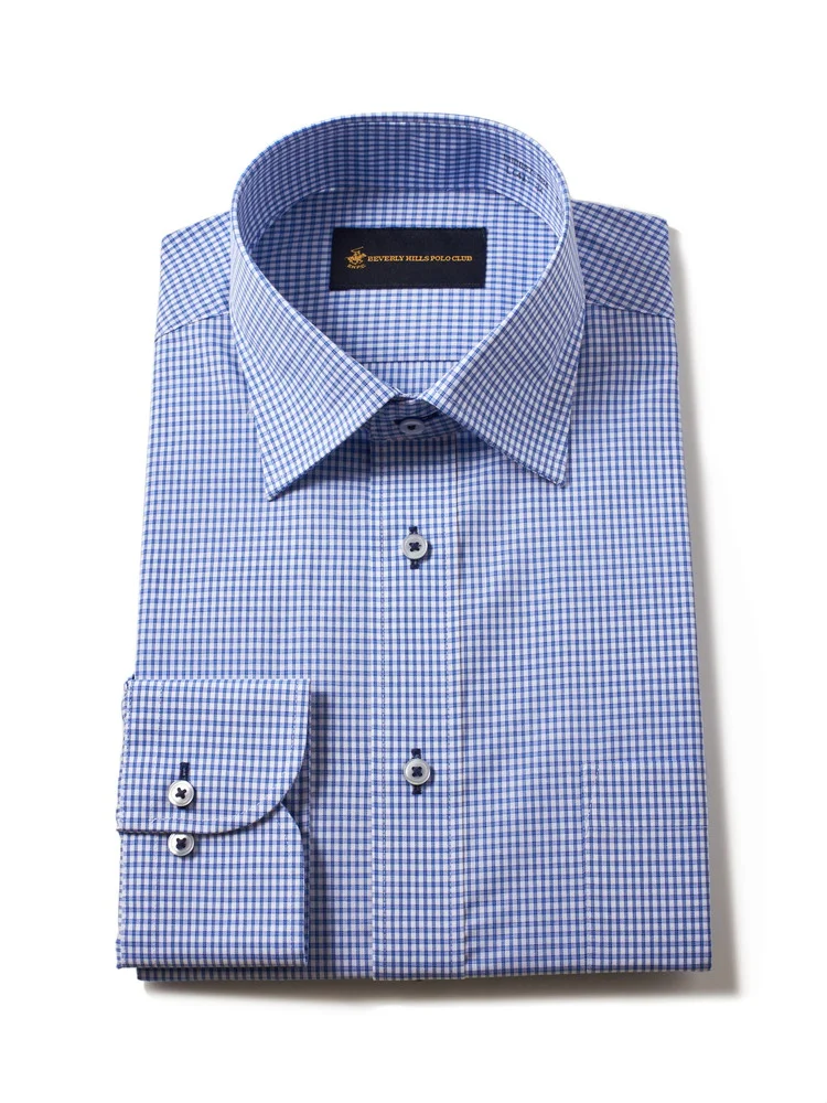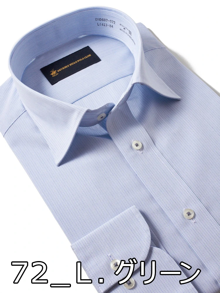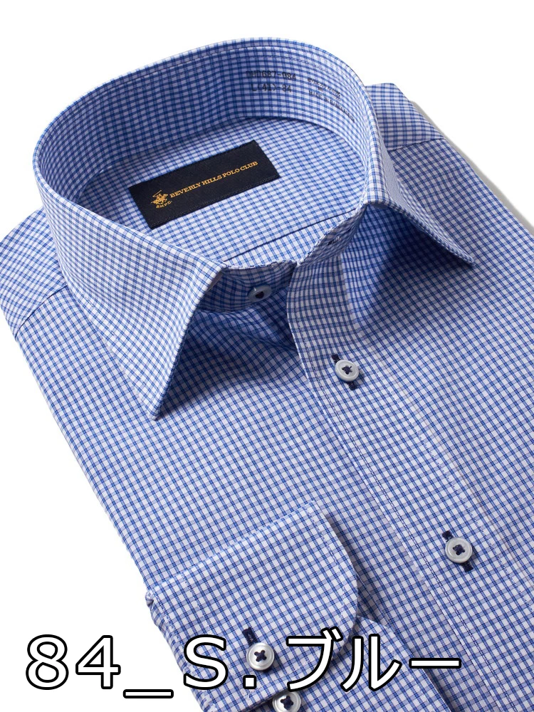 【形態安定】長袖 ワイシャツ セミワイド トラッドスタイル ビバリーヒルズポロクラブ 通年(S.ブルー)
